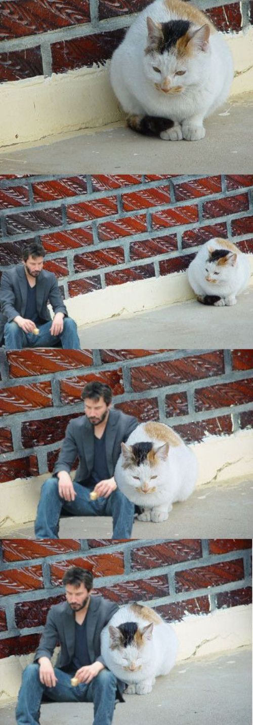 So a Pap took a pic of Keanu Reeves sitting on a park bench looking sad and lonely while eating a sandwich. I have no idea how it started but this lead to “shopped Sad Keanu. Yesterday was Cheer Up Keanu day so in honor of that, a day late…I’m adding my own ‘Shopped Sad Keanu to the mix. but first here’s some other gems.