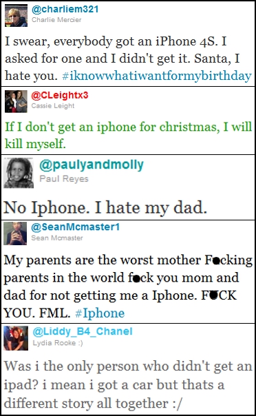 Click here for more put upon first world children bemoaning their lack of a White iPhone Christmas.