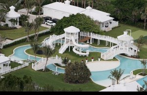 Celine Dion Celine Dion’s former home in Miami is a child’s dream! The neverending pool has gazebos, slides and waterfalls everywhere. There is so much to do you could easily never visit the ocean with this extravagant pool in your back yard.